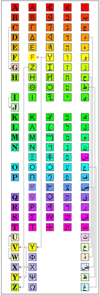 cu Iranul. Ca să înțelegi rapid cum s-a construit alfabetul în vest trebuie comparate literele una cu alta.